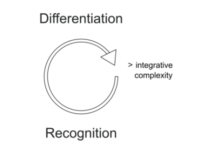 Por otro lado, están los procesos de reconocimiento o apropiación. En el proceso cíclico, se comienza atendiendo a los conceptos más concretos aplicados en el problema terapéutico y que representen un primer sentido de reconocimiento o apropiación. Este es un paso muy relevante en clínica de alta complejidad (que puede considerar problemáticas de adicciones, experiencia suicida, alucinaciones, alta compartimentalización, etcétera). Solo después de esa primera apropiación, se comienza estableciendo (a través de la estrategia de bracketing) la posibilidad de realizar nuevas diferenciaciones, lo que lleva al ciclo nuevamente hacia el reconocimiento y así sucesivamente.